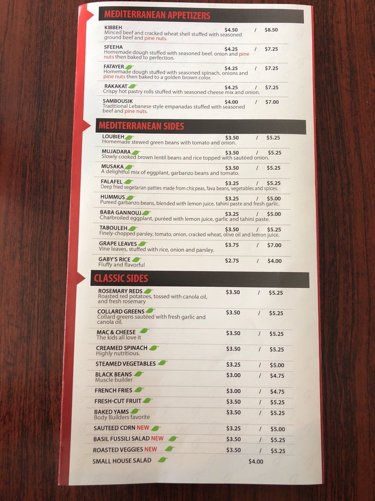 Gaby's Mediterranean in Marina del Rey offers a wide array of Mediterranean dishes with options for vegans, vegetarians, and meat lovers alike. The menu includes beef, chicken, and lamb entrees such as Beef Shish Kabob, Chicken Kafta, and Lamb Shish Kabob. Customers rave about the flavorful falafel pita, perfectly seasoned fries, and delicious baklava. With a casual yet classy atmosphere, Gaby's is perfect for a quiet lunch or dinner, accommodating groups and kids. The restaurant also offers delivery, takeout, catering, and happy hour specials. Whether you're a fan of shawarma or kebabs, Gaby's Mediterranean guarantees a satisfying dining experience.